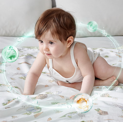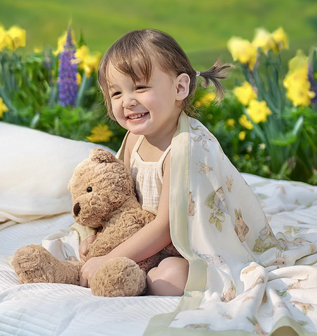 As parents, nothing matters more than the safety and well-being of our little ones. That's why we meticulously designed our Bamboo Muslin Blanket with the highest standards of quality and care. Made from natural materials, it's free from harsh chemicals and additives, ensuring a safe and gentle environment for your baby to cuddle and explore.
